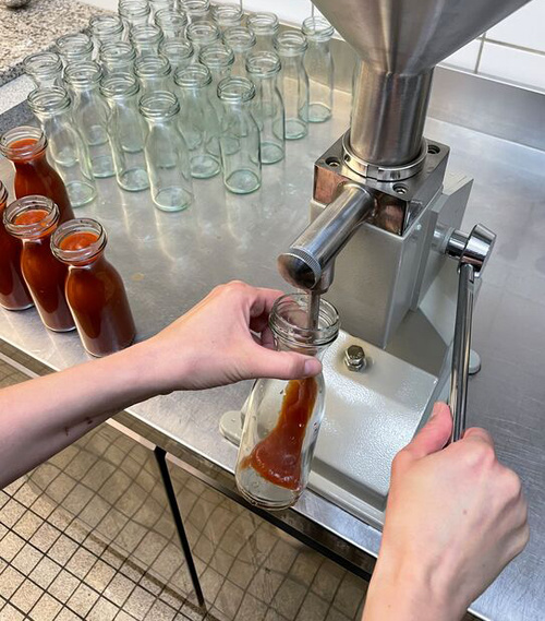 Saucenmanufaktur mit Herz und Leidenschaft – Katharina und Stefan Schepers, ein junges Ehepaar aus Haren, leben ihre Leidenschaft für gutes Essen und haben sich mit handgemachten Bio-Saucen selbständig gemacht. Dabei steht die Idee im Vordergrund, die bestmöglichen Zutaten von tollen Menschen zu beziehen, um Produkte zu erstellen, die weit weg sind von den klassischen Supermarkt Ketchups. In der Produktionsküche in der Höltingmühle in Meppen kochen sie ihre Tunken komplett in Handarbeit nach ganz ausgeklügelten Rezepten, die einen natürlichem Geschmack garantieren, bei dem die Tomate und Gewürze im Mittelpunkt stehen, und ganz nebenbei nur ein geringer Teil an Zucker benötigt wird.
