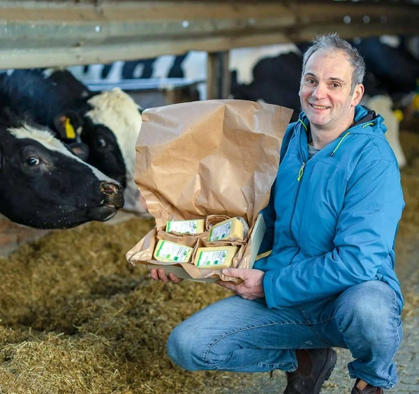 Hofkäse aus eigener Produktion ist sein tägliches Brot. So die Aussage von Ludger. Seine morgenwarme Rohmilch bezieht er ausschließlich von seinen eigenen Milchkühen, welche er in seinem Milchviehbetrieb liebevoll und artgerecht aufzieht und hält.