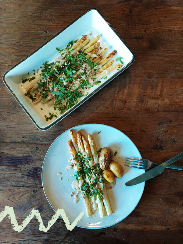 Gerösteter Ofen-Spargel mit einer Tahin-Zitronen Soße