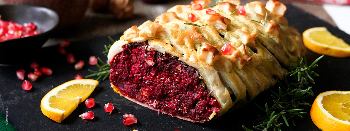 Knuspriger Blätterteig trifft auf herzhafte Gemüse-Nuss-Füllung und ergibt eine feine Pastete – ein Genuss für besondere Anlässe. Perfekt an Festtagen für alle, die gerne vegan schlemmen möchten!