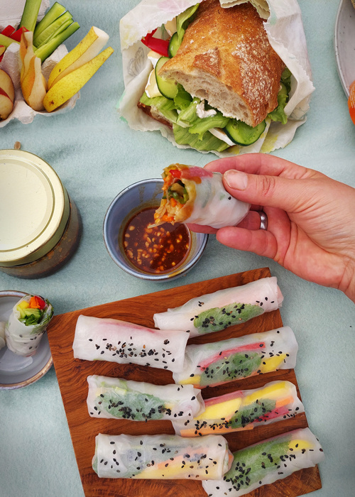 Wer braucht unterwegs schon Messer und Gabel? Snacks, die sich einfach mal schnell in den Mund stecken lassen sind ideal für ein Picknick. Und wenn sie kalt besonders gut schmecken - Perfekt!  Ob klassiche Sandwiches, Waffeln, Obstsalat oder Obst-Käse-Spieße, Salate in jeglicher Form, kalte Bratlinge oder Wraps, orientalische Falaffelbällchen – der Kreativität beim Fingerfood sind kaum Grenzen gesetzt. Auch Muffins eignen sich hervorragend zum mitnehmen. Man kann sie sowohl süß, als auch herzhaft zubereiten. Oder wie wärs mit ein paar frischen Summer-Rolls? Gar nicht so einfach, sich für eins davon zu entscheiden.
