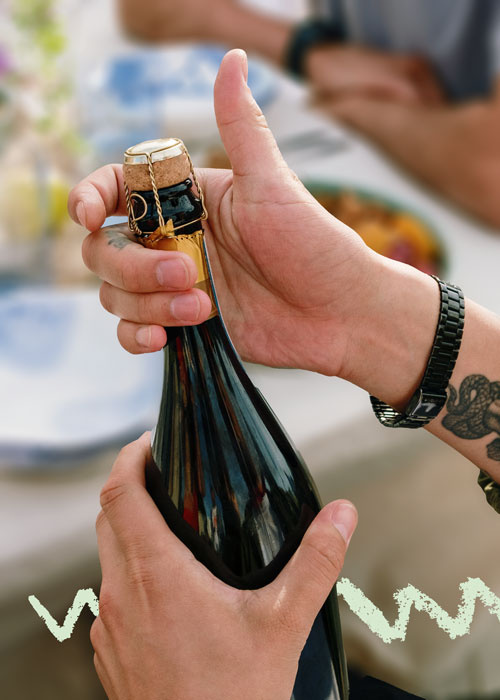 Behutsames öffnen der Flasche