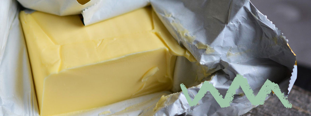 Die Margarine – sie ist auch gekühlt streichfähig. Dies liegt an den ungesättigten Fettsäuren und dem dazugehörigen höheren Schmelzpunkt. Beim Backen verträgt die Margarine die Hitze besser als Butter (Gesättigte Fettsäuren in der Butter haben einen sehr niedrigen Rauchpunkt).