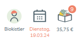 Über den Kalender rechts oben kannst du ganz bequem den nächsten Liefertag auswählen. Außerdem kannst du für Termine in der Zukunft bereits Bestellungen anlegen.