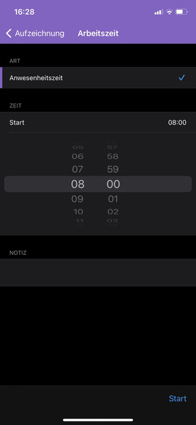 Tipp: Über das Menü unten rechts "Mehr" und "Einstellung" lässt sich eine automatische Start/Stop Erinnerung einrichten. Diese funktioniert erst nach einiger Zeit, wenn die App eure gewohnten Zeiten kennt. Sie erinnert euch, falls ihr einige Minuten nach der gewöhnlichen Start- oder Stopzeit noch nicht aktiv geworden seid.