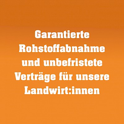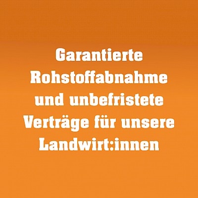 In ihnen finden Landwirt:innen einen verlässlichen Partner. Sie schließen unbefristete, langfristige Verträge mit ihnen ab und garantieren ihnen, alle Getreide die sie anbauen abzunehmen. Damit können sich die Landwirt:innen darauf verlassen, dass sie ihre produzierten Waren verkaufen können – ganz unabhängig von der Marktsituation. Das schafft Absatzsicherheit und Vermarktungssicherheit. Landwirt:innen haben dadurch die Möglichkeit vorauszuplanen und in ihre Betriebe zu investieren.