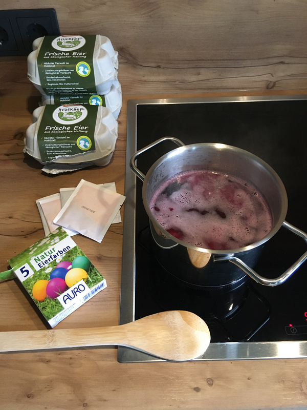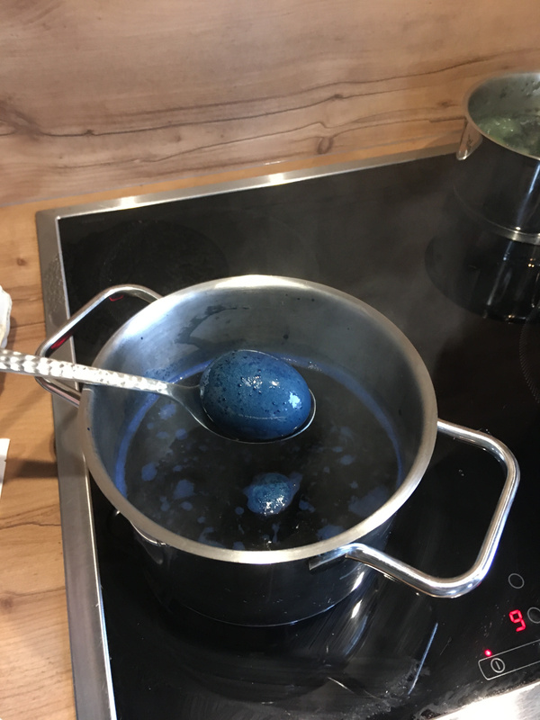 Anders als von anderen Eierfarben bekannt, wo die Eier erst gekocht und anschließend gefärbt werden, ist hier nur ein Arbeitsgang von Nöten.