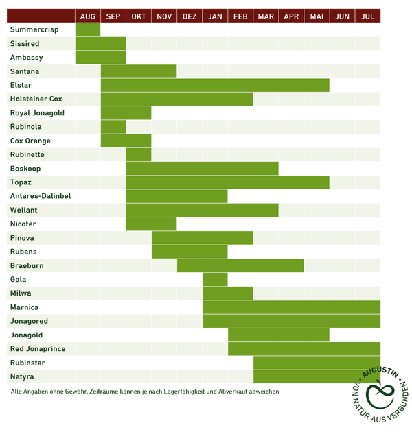 Weitere Infos wie Züchtungsjahr und Herkunftssorten der einzelnen Äpfel gibt es auf der Webseite von Augustin.