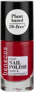 benecos 20-FREE Nagellacke - preiswert & vegan. Die pflanzenbasierte Formulierung besteht zu 80% aus Inhaltsstoffen natürlichen Ursprungs und verzichtet gleichzeitig auf mindestens 20 davon, die bisher als umstritten gelten. On top sind die Nail Polishes mit pflegendem Apfelsamenöl (Upcycling-Produkt) und Biotin angereichert sowie wasser- und luftdurchlässig.