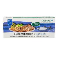 61,5% BRATHERINGSFILET [96,6% Heringsfilets (Clupeaharengus), WEIZENVOLLKORNMEHL*, Dextrose*, Rapsöl*]Wasser, Branntweinessig*, Rohrzucker*, Zwiebeln*,Tomatenmark*, Meersalz, Rotwein*.| Energie | Fett | gesättigte Fettsäuren | Kohlenhydrate | Zucker | Eiweiss | Salz |