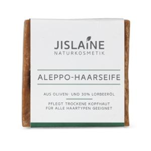 Als klassische Aleppo-Seife besteht die Aleppo-Haarseife von Jislaine aus pflegendem Olivenöl und antiseptischem Lorbeeröl. Durch den hohen Lorbeerölanteil von 30% ist die Seife besonders