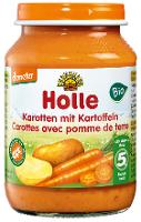Das Babygläschen Karotten mit Kartoffeln eignet sich besonders für die weitere Beikosteinführung und zur Zubereitung der ersten Menüs, um neue Zutaten kennen zu lernen. Der pure Gemüsebrei ist fein püriert und nur beste Demeter-Zutaten aus streng kontrolliertem Anbau werden für die Holle Gläschen verwendet.