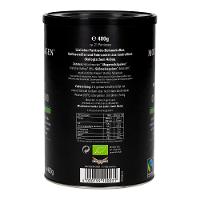 Rohrohrzucker*°, MAGERMILCHPULVER*, löslicher Bohnenkaffee (9%)*°, SÜSSMOLKENPULVER*, KOKOSFETT*, Kakao stark entölt (5,5%)*, Meersalz| Energie | Fett | gesättigte Fettsäuren | Kohlenhydrate | Zucker | Ballaststoffe | Eiweiss | Salz |