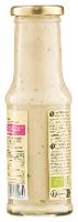 Wasser, Sonnenblumenöl*, Branntweinessig*, Agavendicksaft*, Knoblauch* 3,3 %, Sonnenblumenkernmehl*, Meersalz, Dijon SENF* (Wasser, braune SENFSAAT*, Branntweinessig*, Meersalz), Zwiebeln*, Oregano*, Petersilie*, Zitrone*, Maisstärke*, Pfeilwurzelmehl*, Fababohnenprotein*, Verdickungsmittel: Guarkernmehl*.| Energie | Fett | gesättigte Fettsäuren | Kohlenhydrate | Zucker | Eiweiss | Salz |
