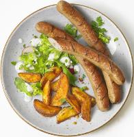 90% Schweinefleisch*, Trinkwasser, Meersalz, Gewürze* (Ingwer*, Majoran*, Nelke*, Koriander*, Kümmel*, Petersilie*, Pfeffer*), Dextrose*, Schafsaitling .| Energie | Fett | gesättigte Fettsäuren | Kohlenhydrate | Zucker | Eiweiss | Salz |