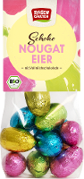 Vollmilchschokolade* 50% (Rohrzucker* , Kakaobutter*, VOLLMILCHPULVER*, Kakaomasse*, Vanilleschoten* gemahlen), Nougatcreme* (Rohrzucker*, HASELNUSSKERNE* 11%, Kakaobutter*, Sonnenblumenöl*, VOLLMILCHPULVER*, MAGERMILCHPULVER*, Kakaomasse*) Kakao: 35% mindestens in der Vollmilchschokolade| Energie | Fett | gesättigte Fettsäuren | Kohlenhydrate | Zucker | Ballaststoffe | Eiweiss | Salz |