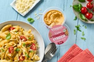 Wasser, Kokosfett*, Sheafett*, MANDELMEHL* entölt (4%), HAFER* (5%), Tomatenmark* (zweifach konzentriert) (2%), Tomaten* getrocknet (1%), Apfelsaftkonzentrat*, Gewürze*, Meersalz, Tomaten* (1%), Kräuter*, Säureregulator Milchsäure, Traubenzucker*.| Energie | Fett | gesättigte Fettsäuren | Kohlenhydrate | Zucker | Ballaststoffe | Eiweiss | Salz |