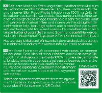 Bestandteile: Wasser, Sonnenblumenöl+, Kakaobutter+, Glyzerin, Fettsäureglyzerid, Sheabutter+, Stearinsäure, Palmitinsäure, Pentylenglykol, Extrakt aus Rosmarinblättern+, Extrakt aus Kamillenblüten+, Extrakt aus Ringelblumen-(Calendula-)blüten+, Extrakt aus Stiefmütterchen, Alkohol, Betain, Carrageenan, Xanthan, Milchsäure, Fettsäureglyzerid, Lactylmilchsäureester Natriumsalze, Duft, Benzylbenzoat, Beta-Caryophyllen, Campher, Orangenblütenöl, Orangenschalenöl, Geraniol, Lavendelöl/Extrakt, Limonen, Linalool, Linalylacetat, Pinen, Terpineol, Vanillin