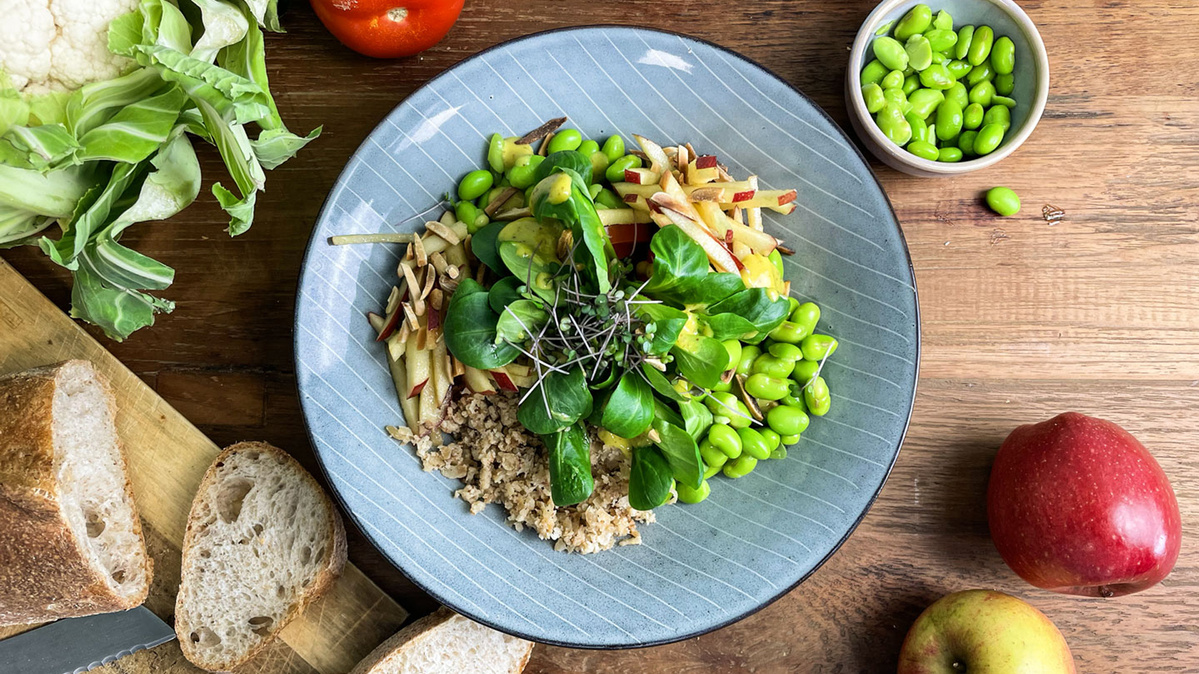 7. Feldsalat putzen, waschen und mit einer Salatschleuder trockenschleudern.